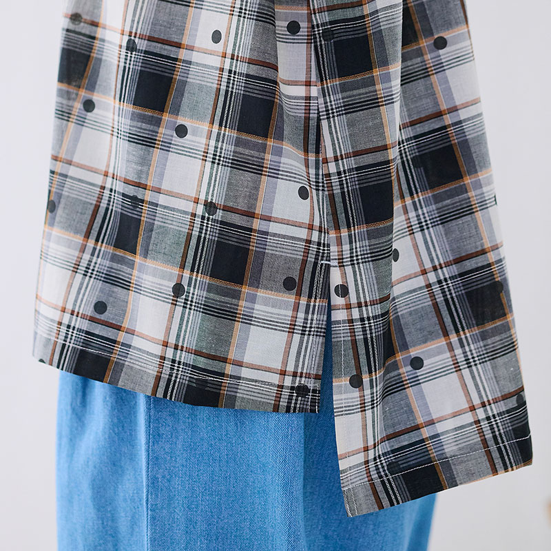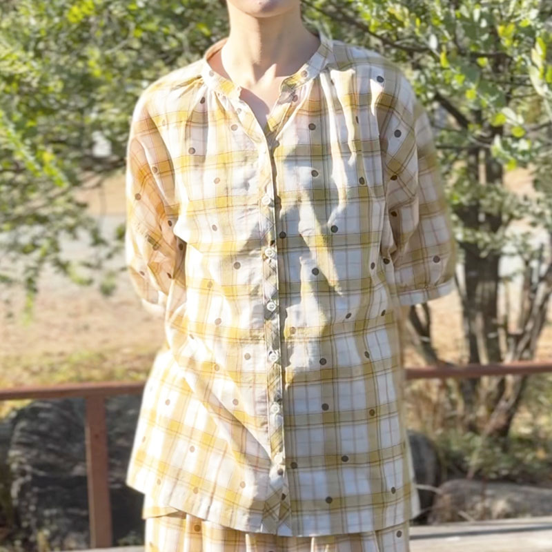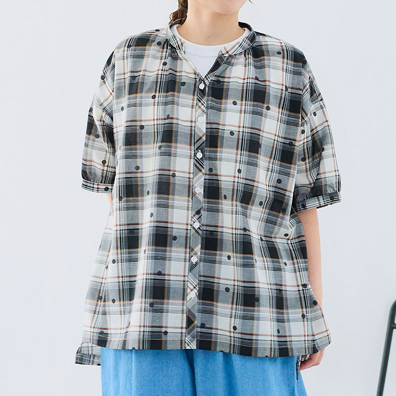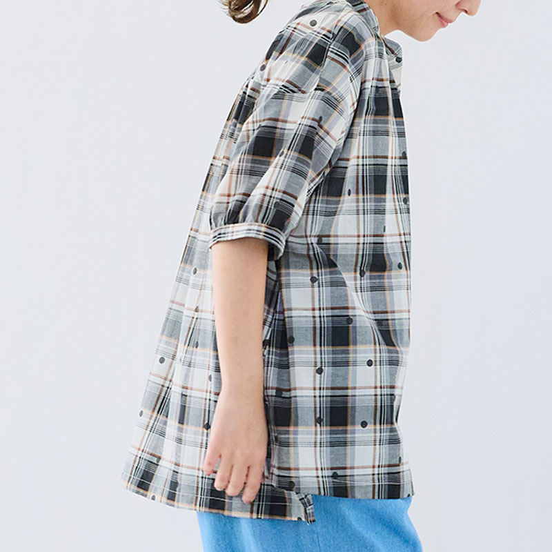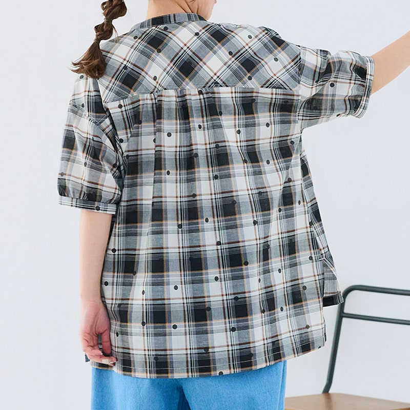 婦人『cloudnine』布帛ジャガードチェック・ドットプリント5分袖前開きチュニック