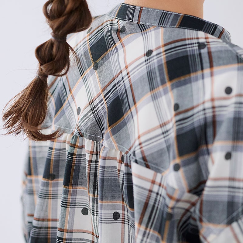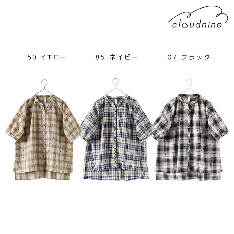 大西衣料(株)が運営する、【公式】卸・仕入れサイト『SELF WEB SHOP』で 婦人『cloudnine』布帛ジャガードチェック・ドットプリント5分袖前開きチュニック をお仕入れ!