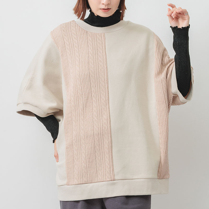 婦人『m.m.o.』ケーブルニットソー切替プルオーバー