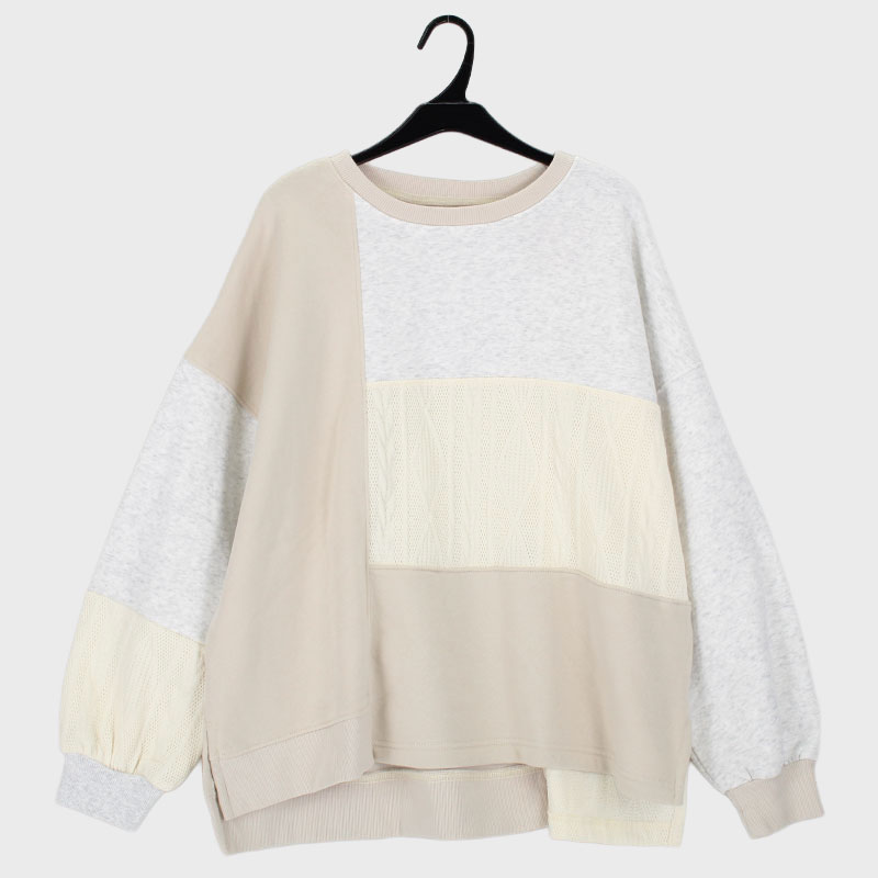 婦人『m.m.o.』ケーブルニットソードッキングプルオーバー