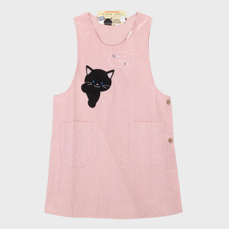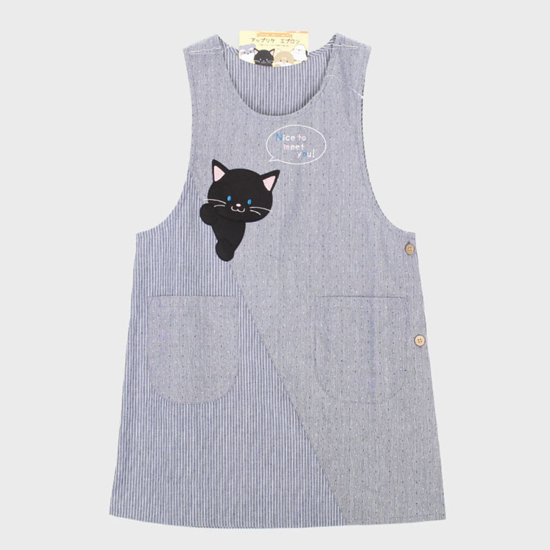 大西衣料(株)が運営する、【公式】卸・仕入れサイト『SELF WEB SHOP』で 婦人先染めストライプアップリケ付きタバードエプロン(黒ネコ) をお仕入れ!