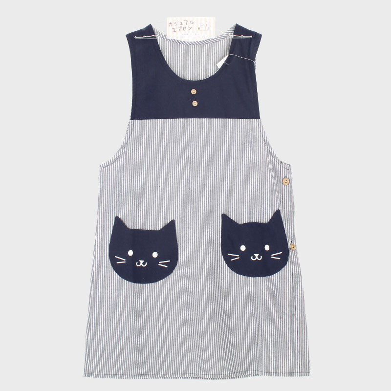 婦人サッカーストライプネコ型ポケットタバードエプロン