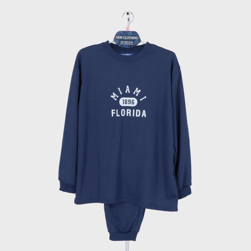 紳士E/Cダンボール丸首Tスーツパジャマ(胸プリント)