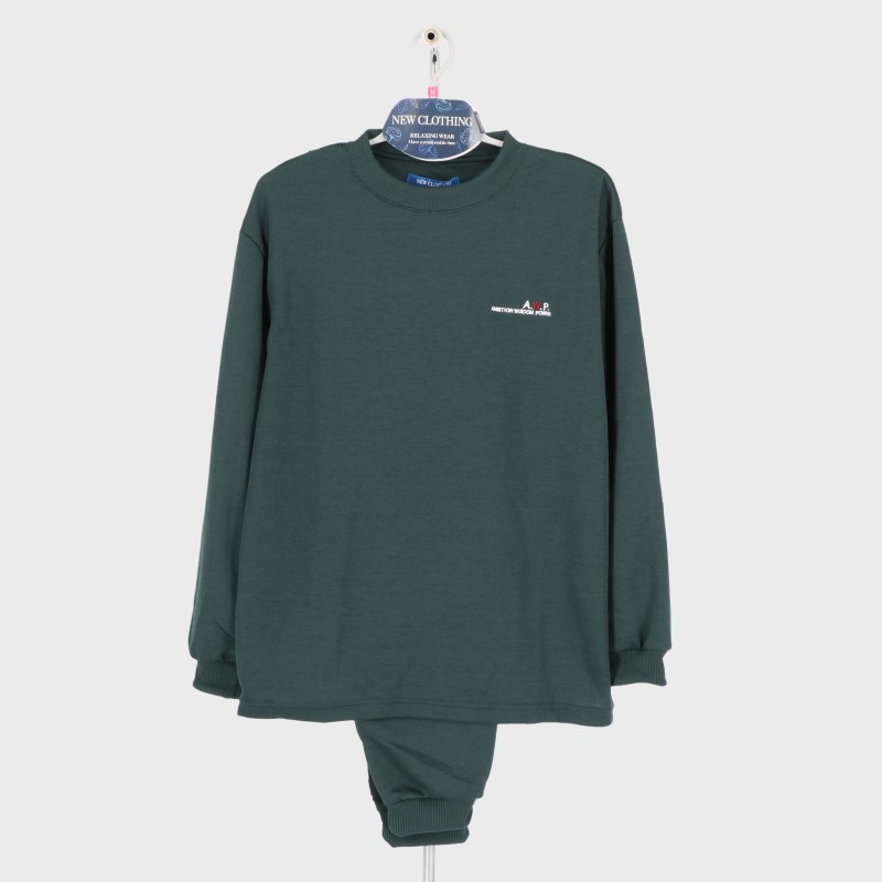 紳士E/Cダンボール丸首Tスーツパジャマ(胸ワンポイント)