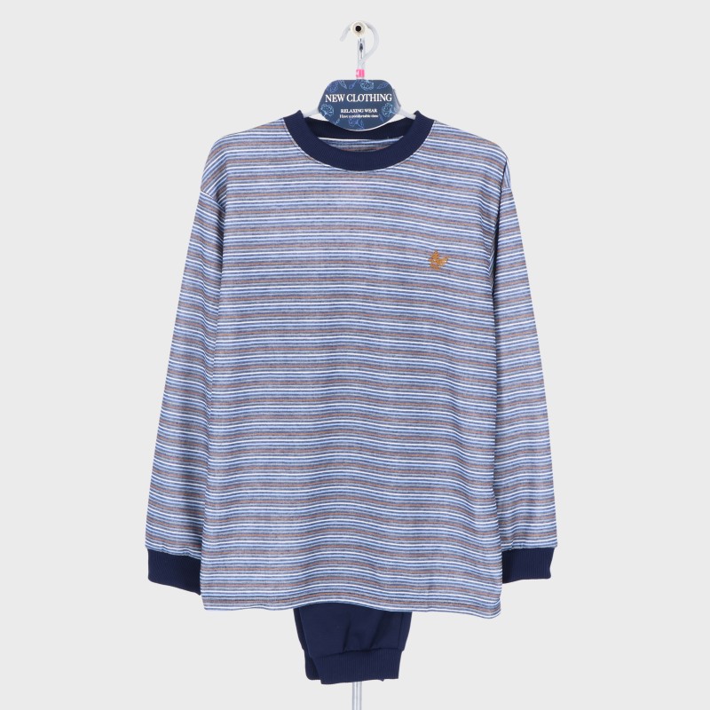 紳士E/Cダンボール丸首Tスーツパジャマ(ボーダー)