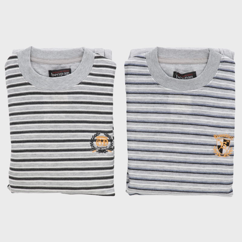 紳士綿混ダンボールボーダーTスーツパジャマ