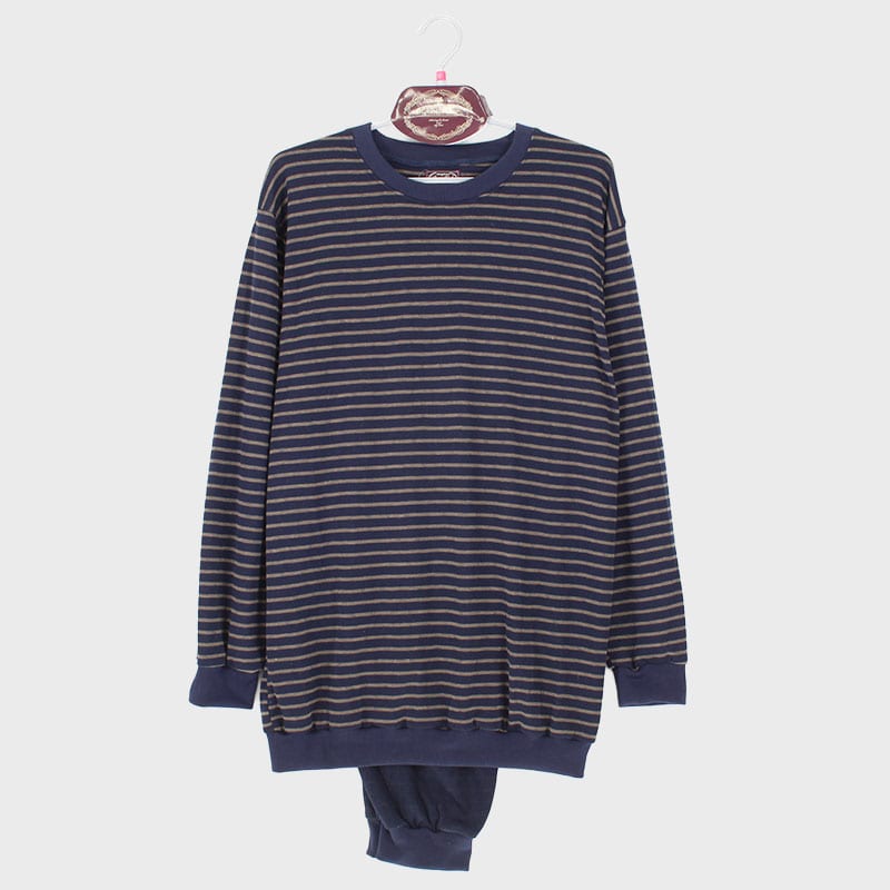 紳士E/C接結ニット丸首Tスーツパジャマ(ボーダー)