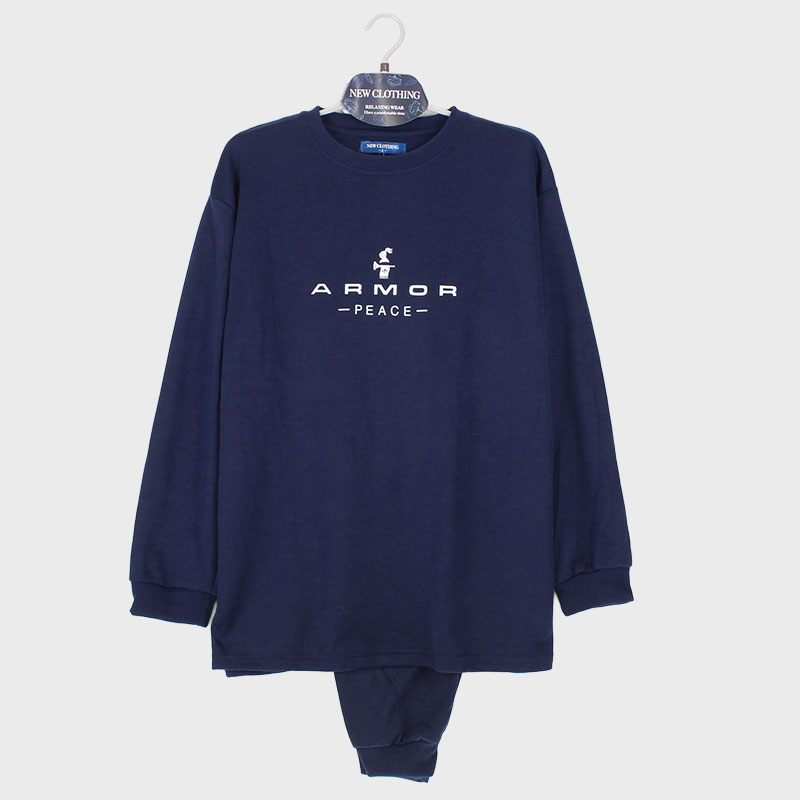 紳士E/Cダンボール丸首Tスーツパジャマ(胸プリント)