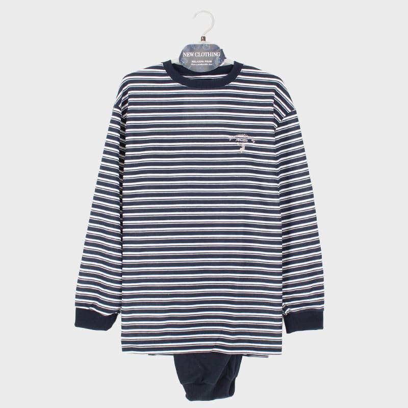 紳士E/Cダンボール丸首Tスーツパジャマ(ボーダー)