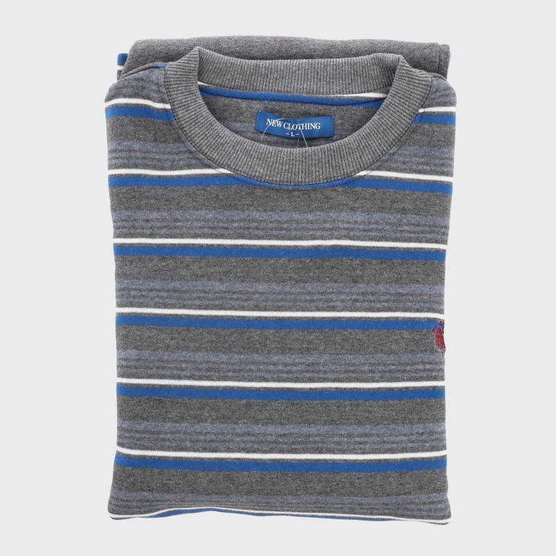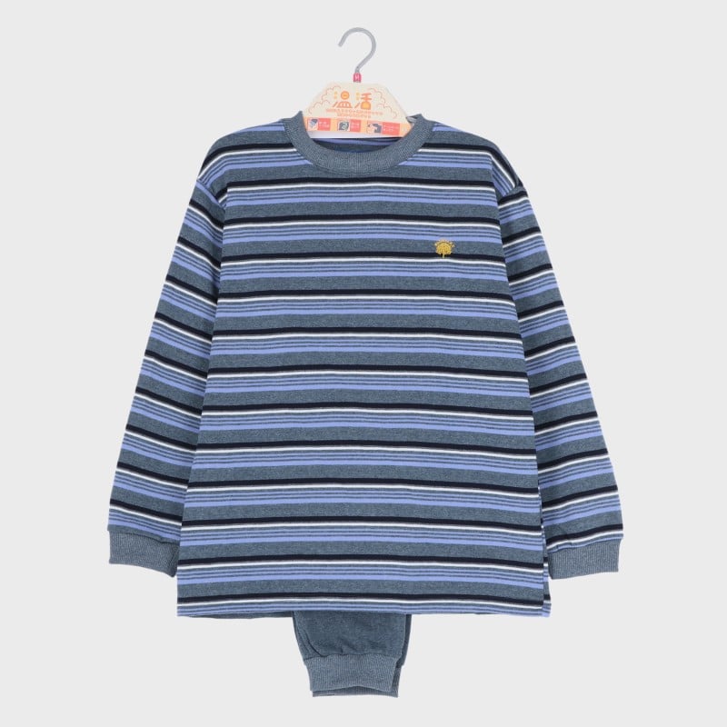 紳士E/Cシャギー丸首Tスーツパジャマ(ボーダーワンポイント)