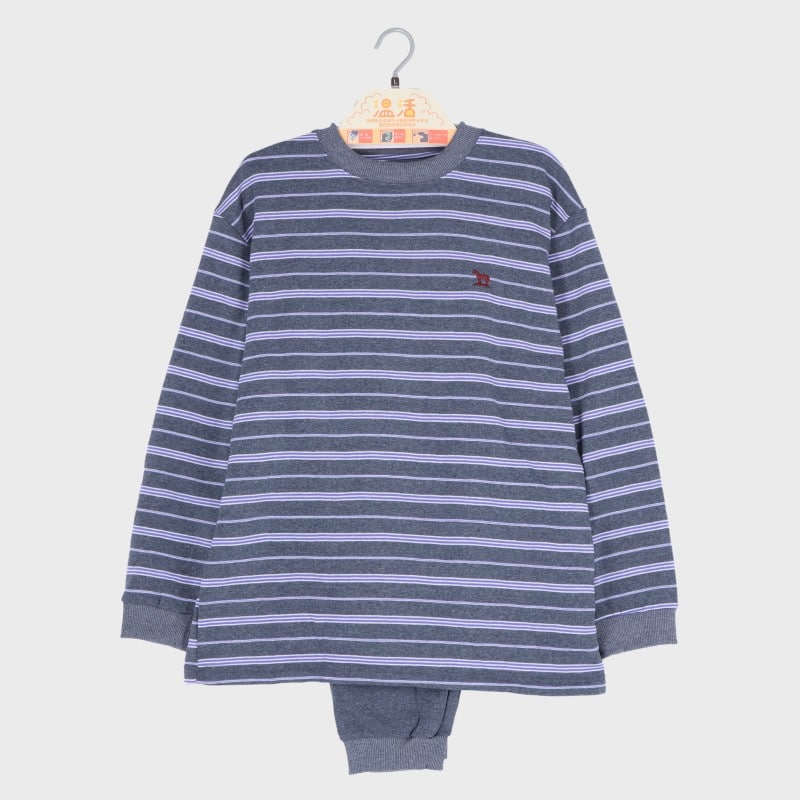 紳士E/Cシャギー丸首Tスーツパジャマ(ボーダーワンポイント)