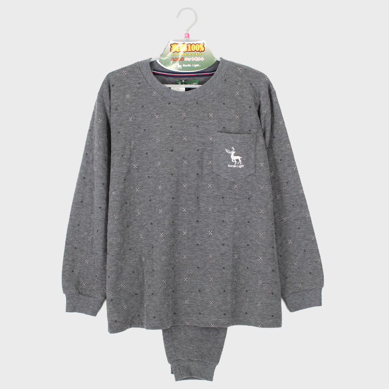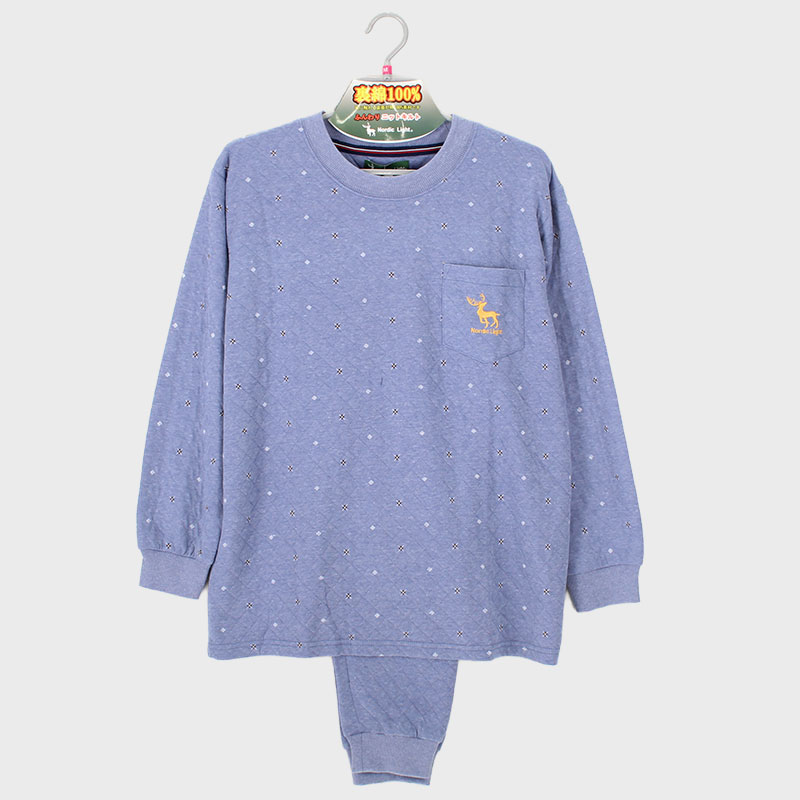 紳士『Nordic Light』裏綿100%ニットキルト丸首Tスーツパジャマ