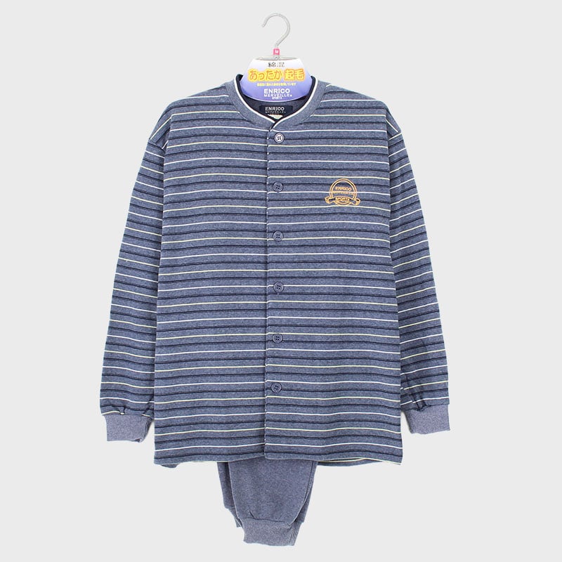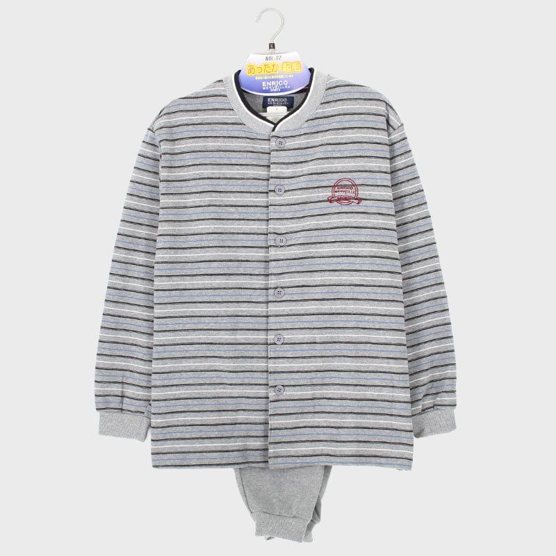 紳士『ENRICO』綿混シャギー衿なし前開きパジャマ
