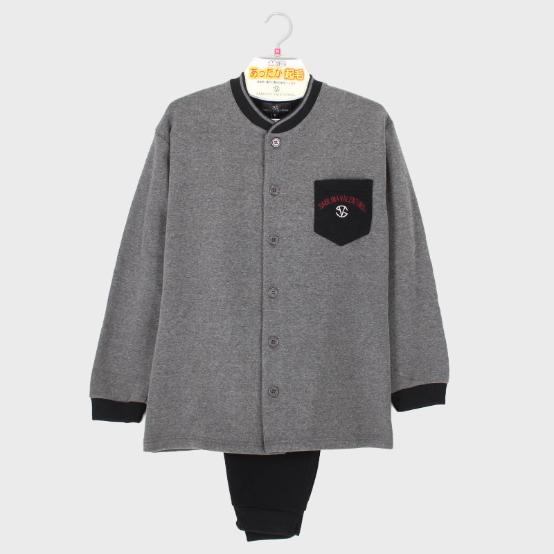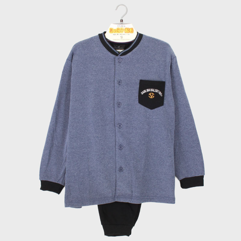 紳士『SABLINA VALENTINO』綿混シャギー衿なし前開きパジャマ