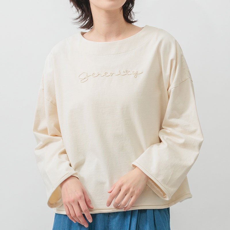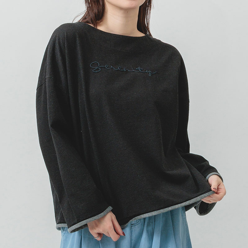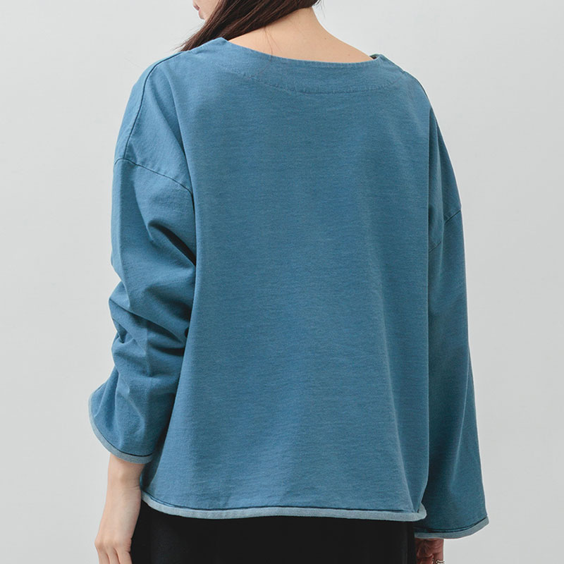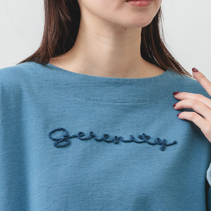 婦人『m.m.o.』インディゴ裏毛ロゴ刺しゅうトップス