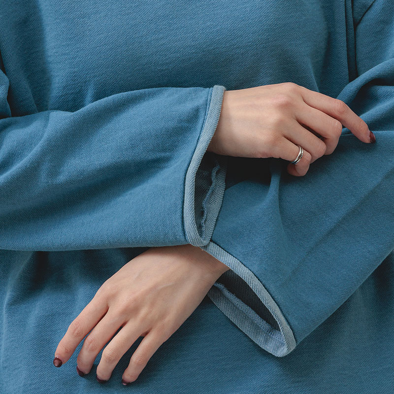 大西衣料(株)が運営する、【公式】卸・仕入れサイト『SELF WEB SHOP』で 婦人『m.m.o.』インディゴ裏毛ロゴ刺しゅうトップス をお仕入れ!