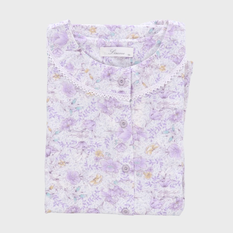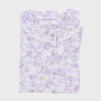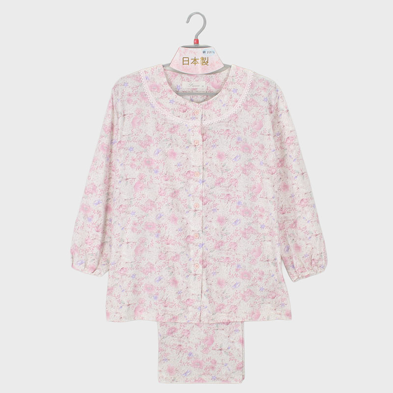婦人日本製綿100%天竺衿無し長袖パジャマ(大花)