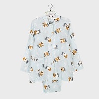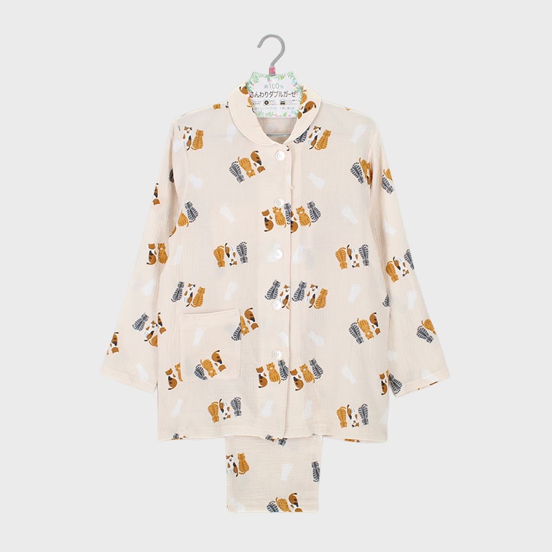 婦人ふんわりダブルガーゼ衿付き長袖パジャマ(ネコ)