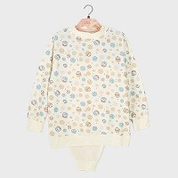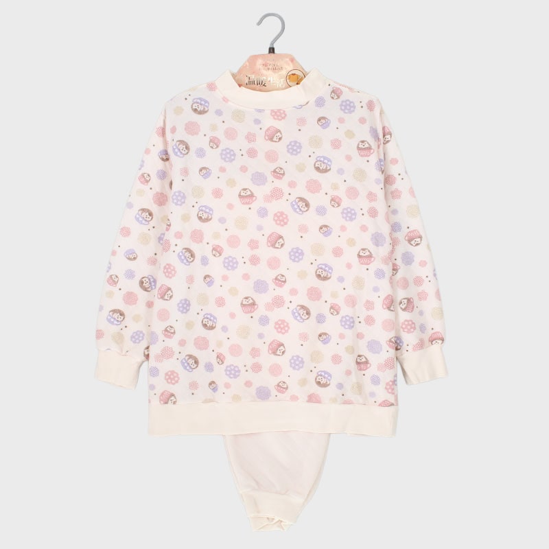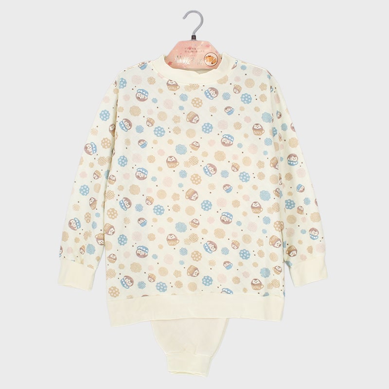 婦人『ORIZURU』裏綿E/Cダイヤキルト丸首・リブ長Tスーツパジャマ(ハリネズミ)