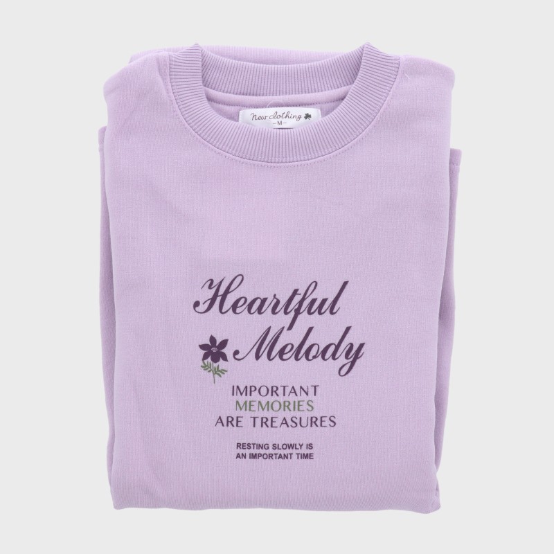 婦人E/Cシャギー丸首Tスーツパジャマ(無地×胸プリント)