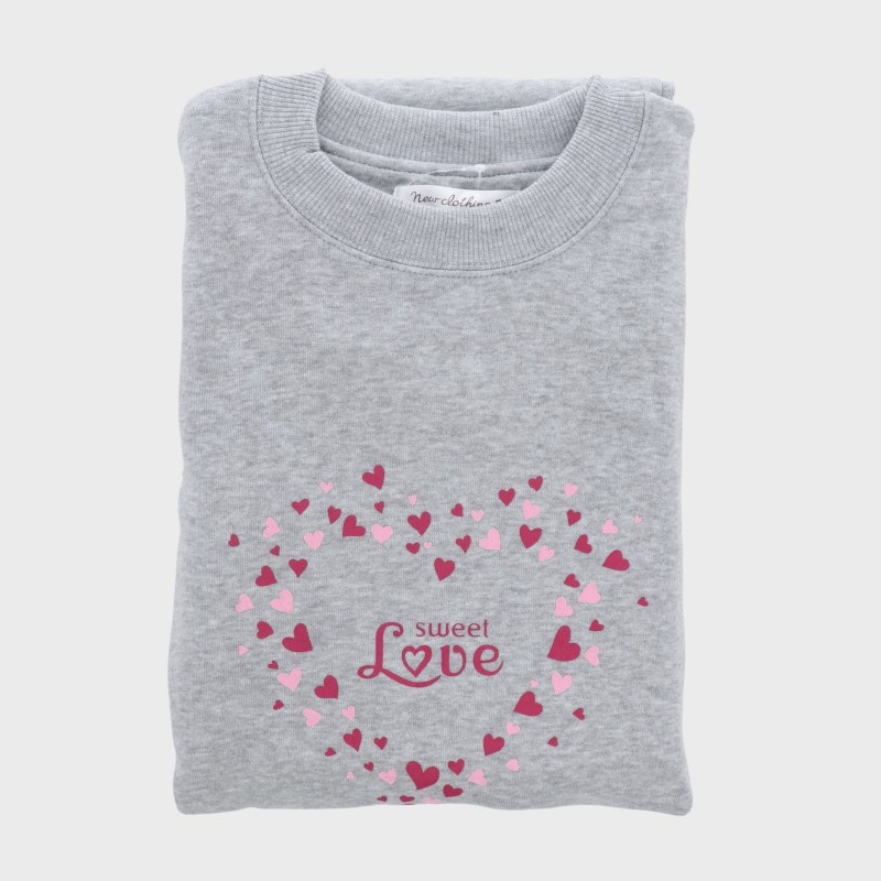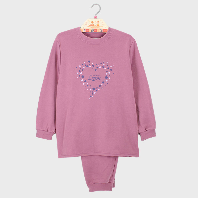 婦人E/Cシャギー丸首Tスーツパジャマ(無地×胸プリント)