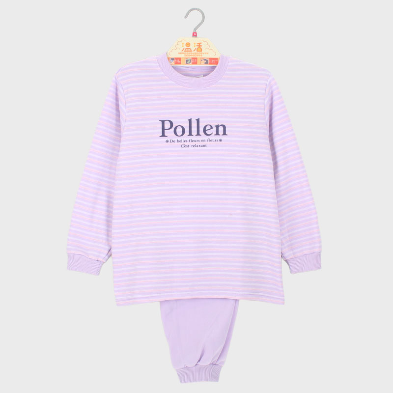 婦人E/Cシャギー丸首Tスーツパジャマ(ボーダー×胸プリント)