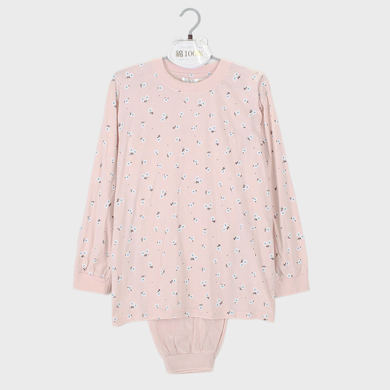 婦人『ORIZURU』綿100%天竺長袖Tスーツ(小花)