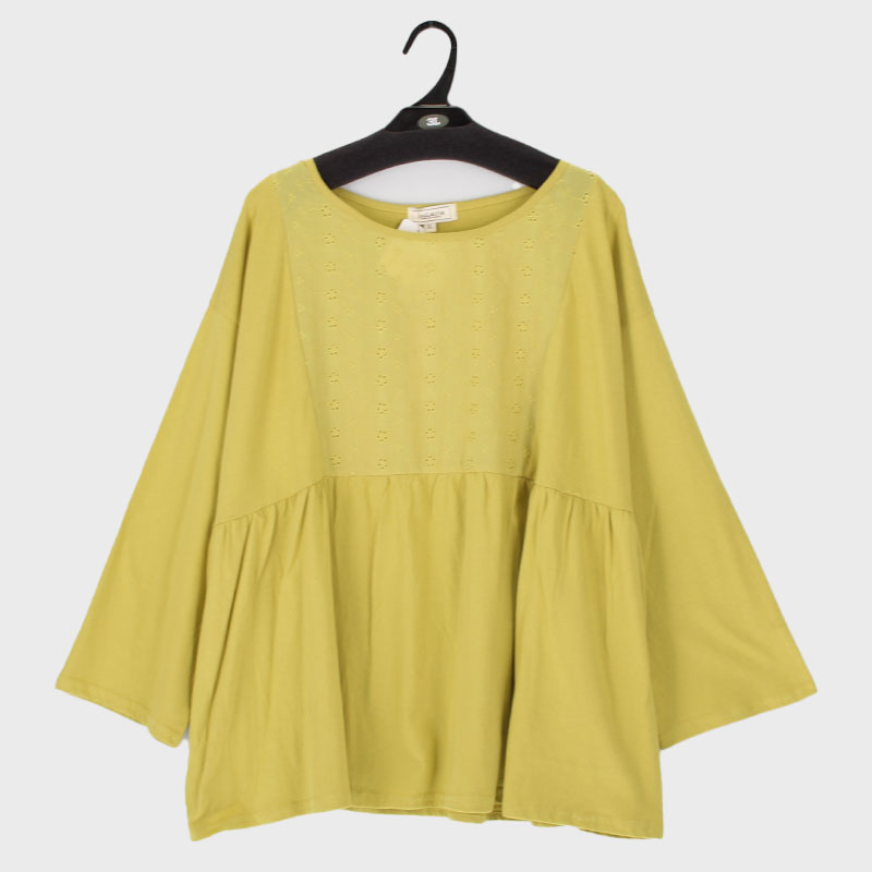 大西衣料(株)が運営する、【公式】卸・仕入れサイト『SELF WEB SHOP』で 婦人『isoLaine』大寸7分袖レース切替ギャザーカットソープルオーバー(LL・3L) をお仕入れ!