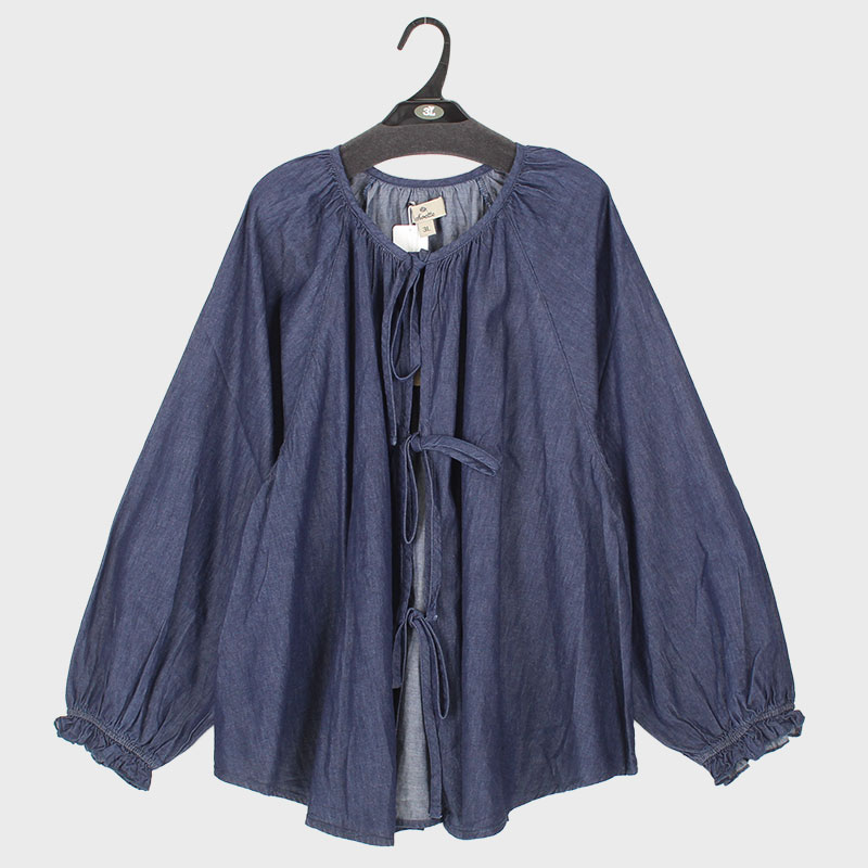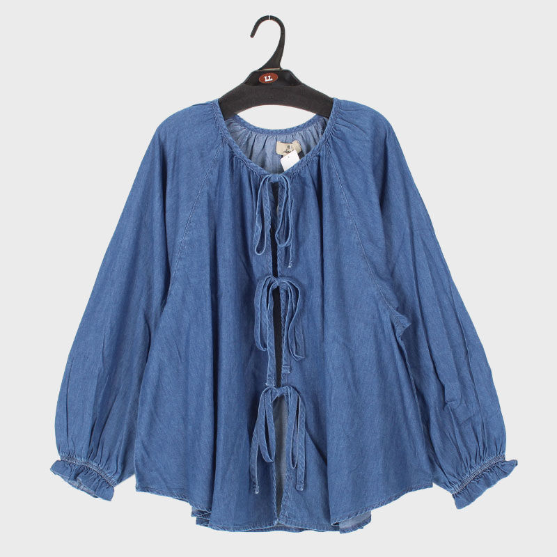大西衣料(株)が運営する、【公式】卸・仕入れサイト『SELF WEB SHOP』で 婦人『choette』大寸長袖デニムリボンブラウス(LL・3L) をお仕入れ!