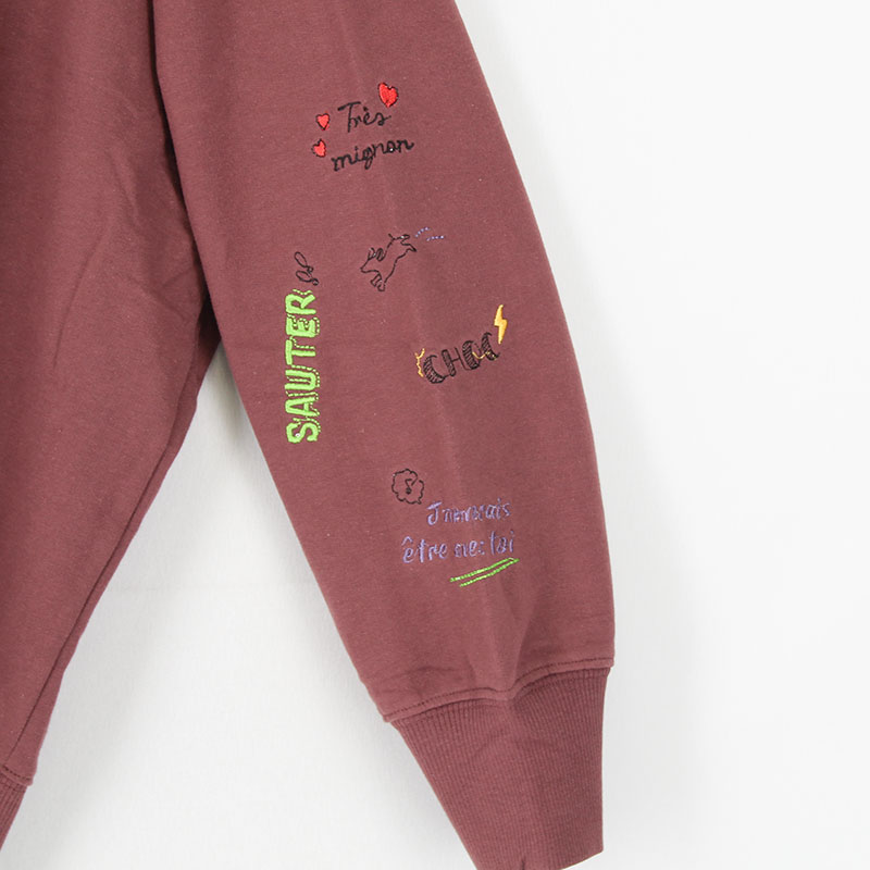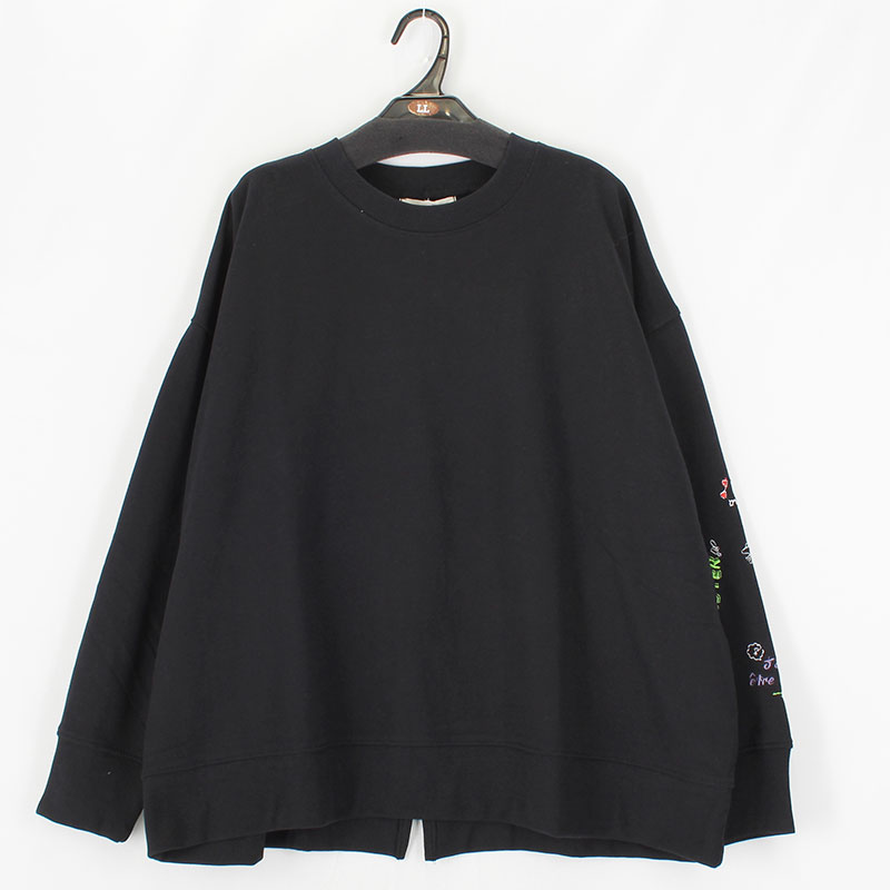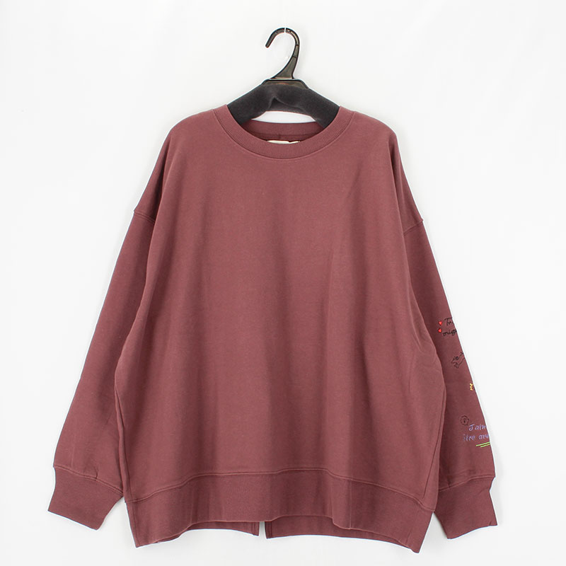 婦人大寸長袖裏毛袖ししゅうワイドプルオーバー