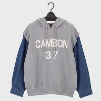 婦人デニム袖ロゴニットパーカー