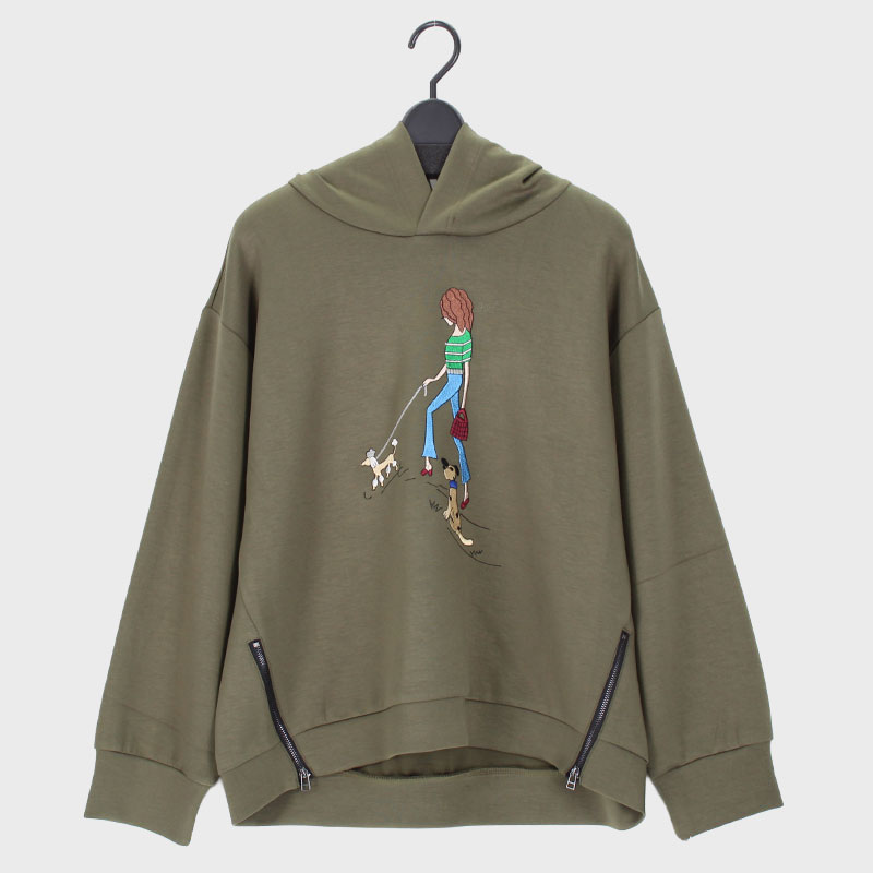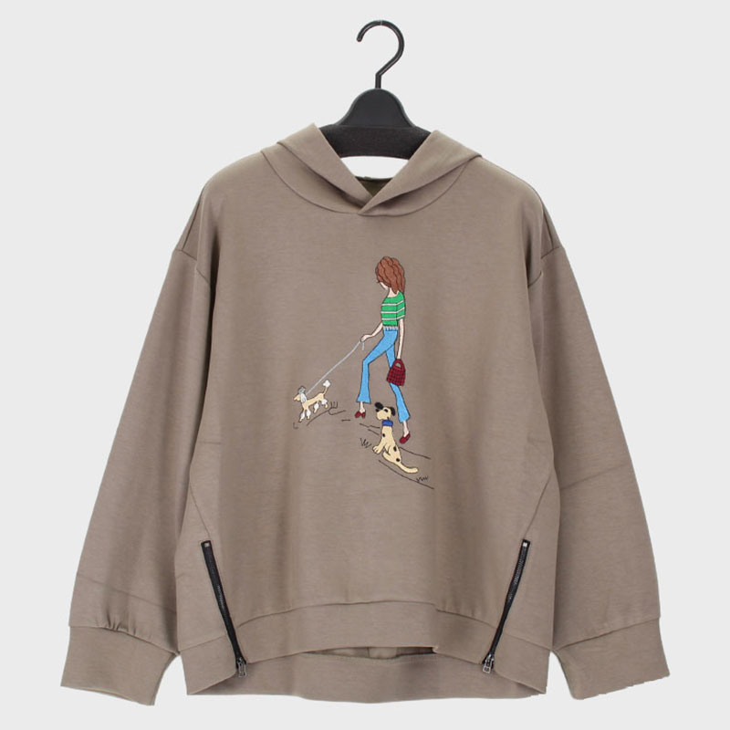 婦人パーカー(刺しゅうロゴ、わんちゃん)