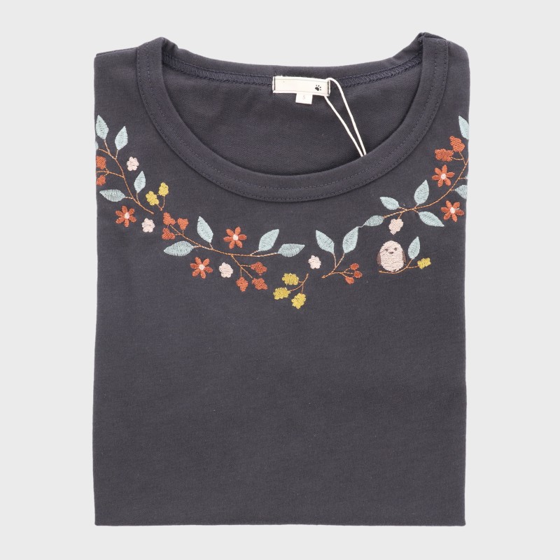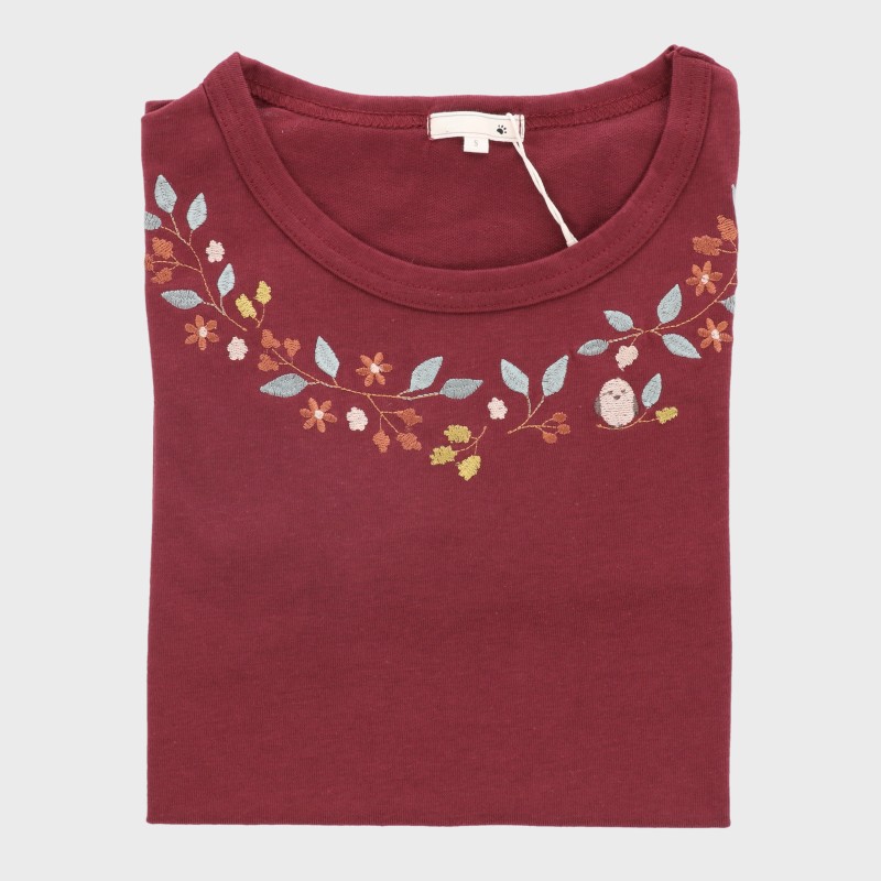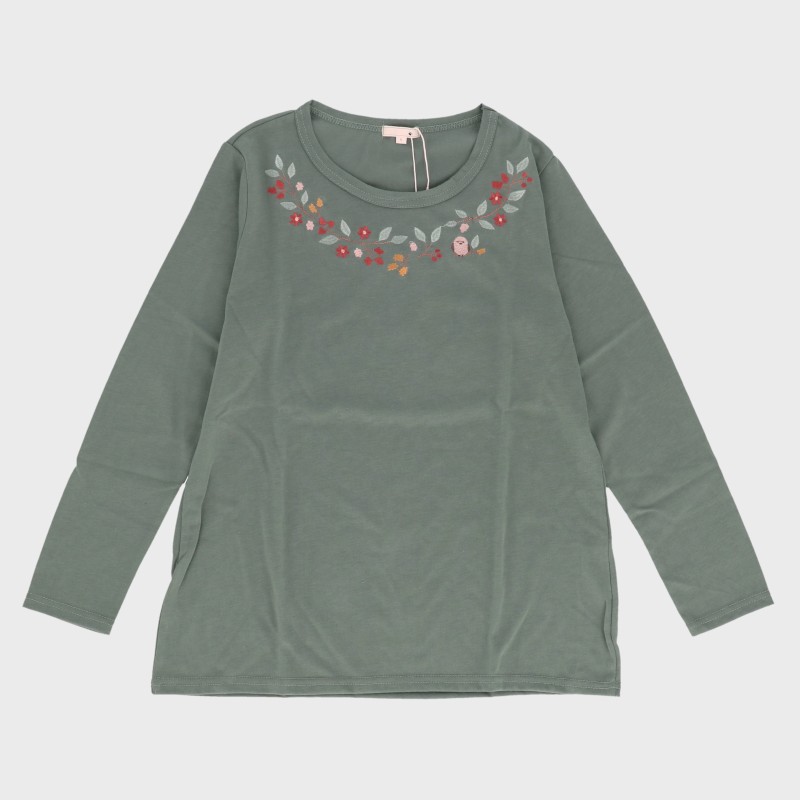 婦人長袖S寸刺しゅうTシャツ