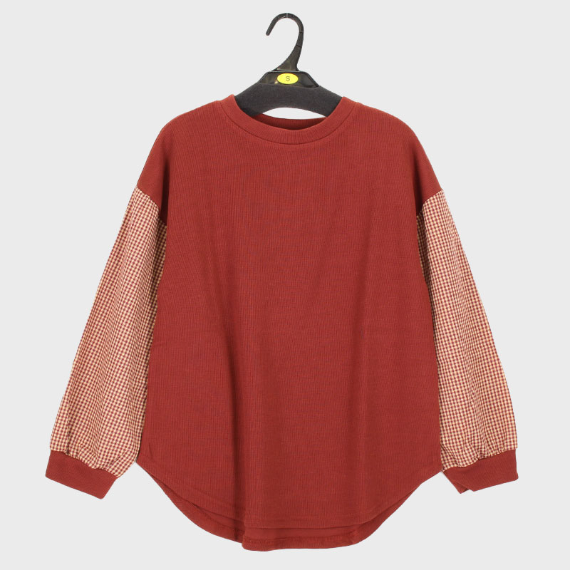大西衣料(株)が運営する、【公式】卸・仕入れサイト『SELF WEB SHOP』で 婦人S寸長袖Wフェイスチェック柄袖布帛切替プルオーバー をお仕入れ!