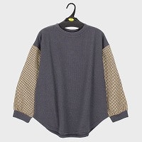 婦人S寸長袖Wフェイスチェック柄袖布帛切替プルオーバー