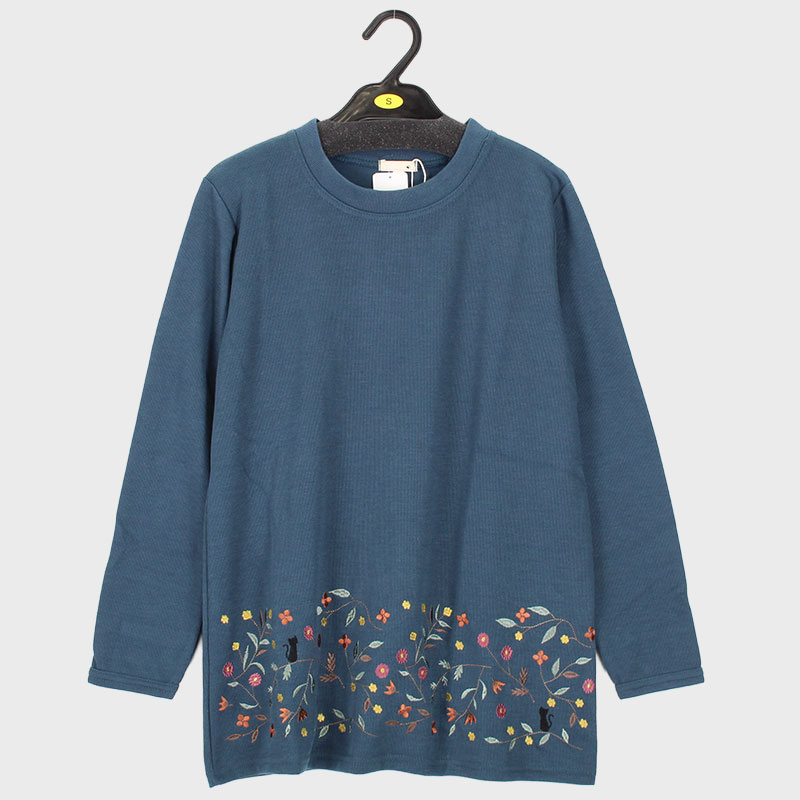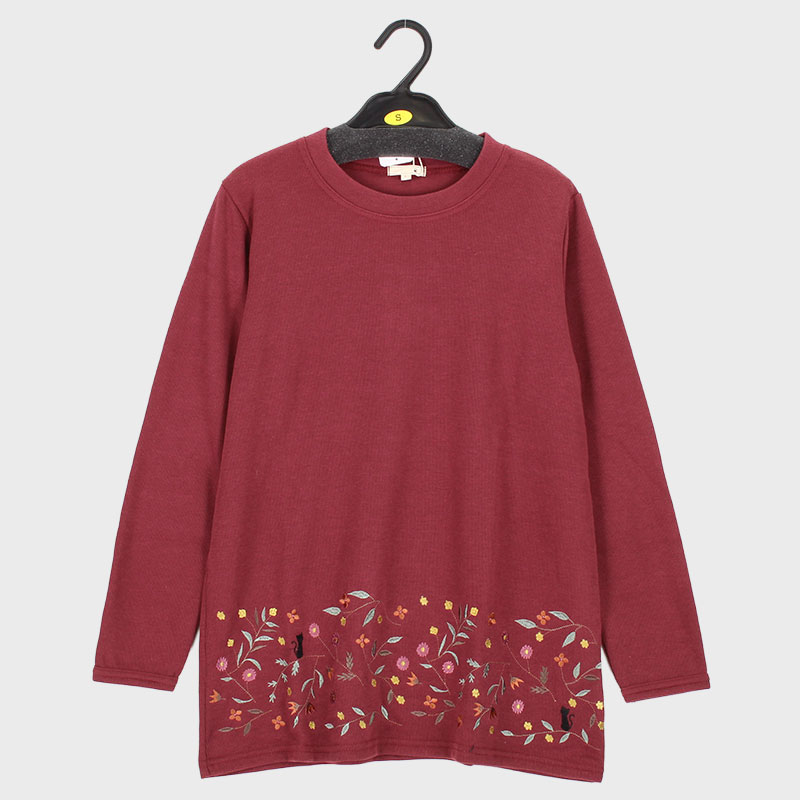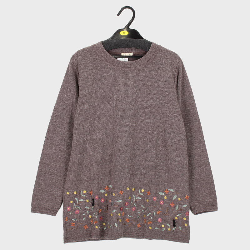 婦人S寸長袖Wフェイス裾ネコししゅうチュニック