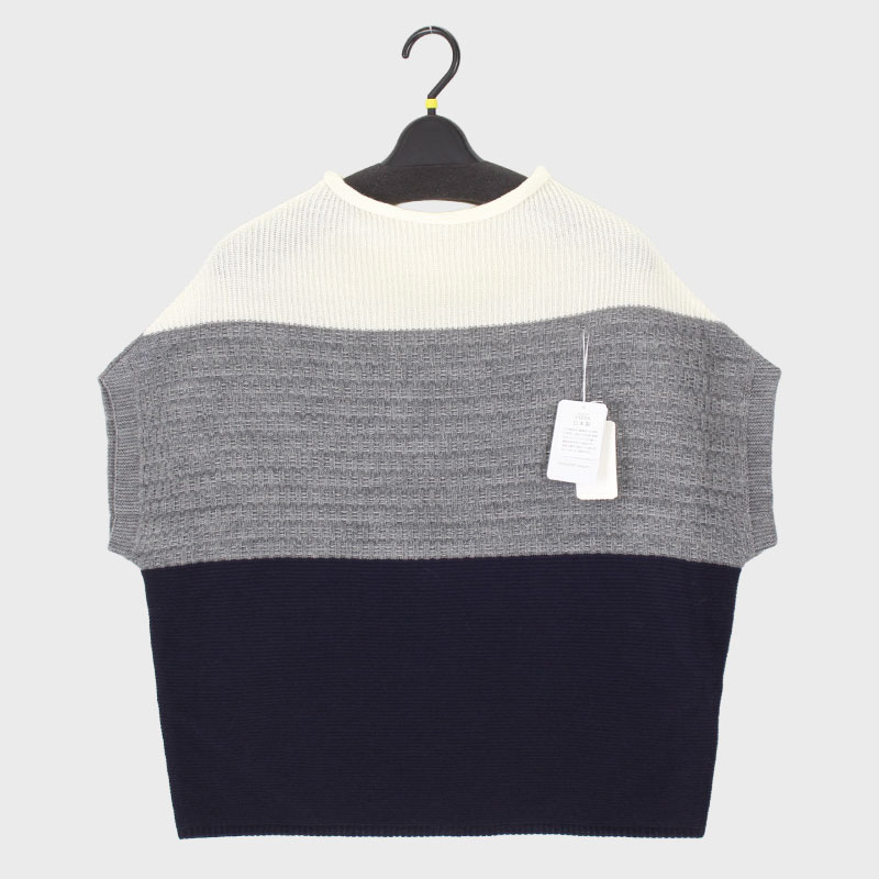 婦人『日本製』S寸アンゴラ混配色切替ベスト