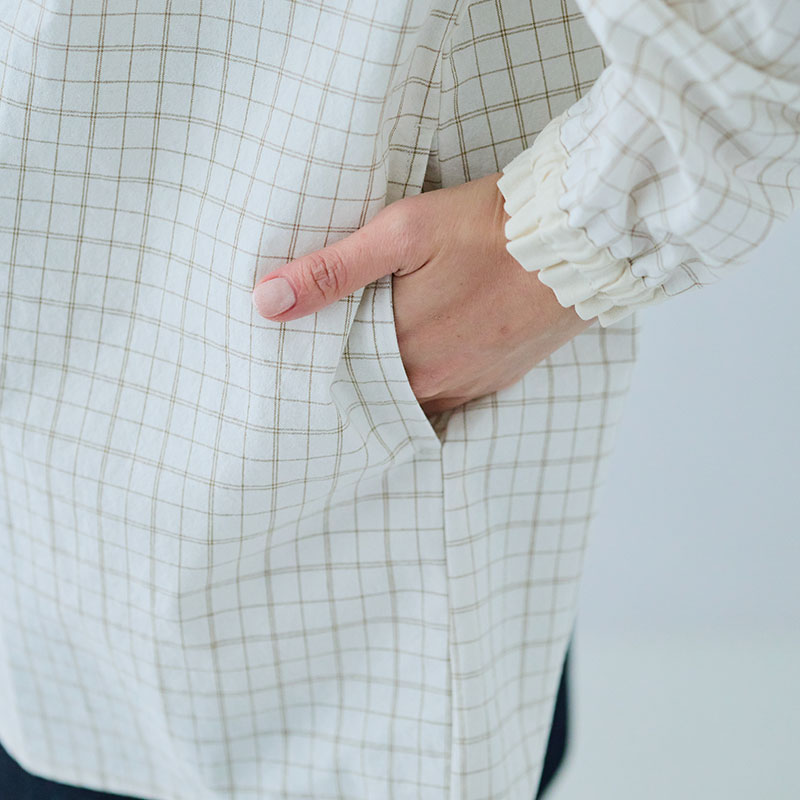 婦人『cloudnine』先染めキャンバス柄+配色生地チュニック