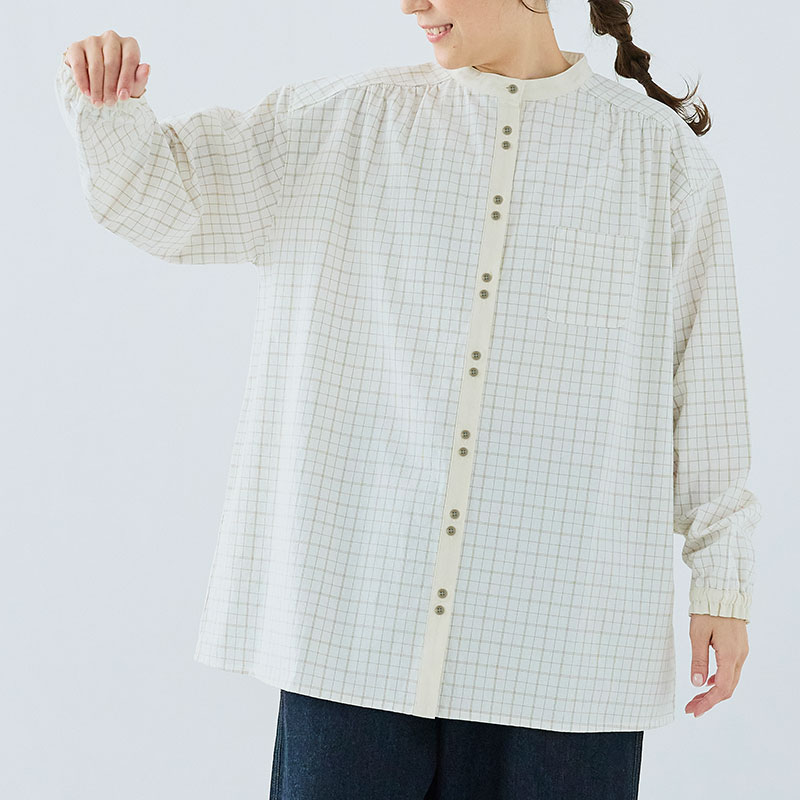 大西衣料(株)が運営する、【公式】卸・仕入れサイト『SELF WEB SHOP』で 婦人『cloudnine』先染めキャンバス柄+配色生地チュニック をお仕入れ!