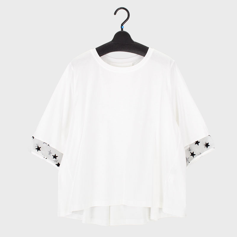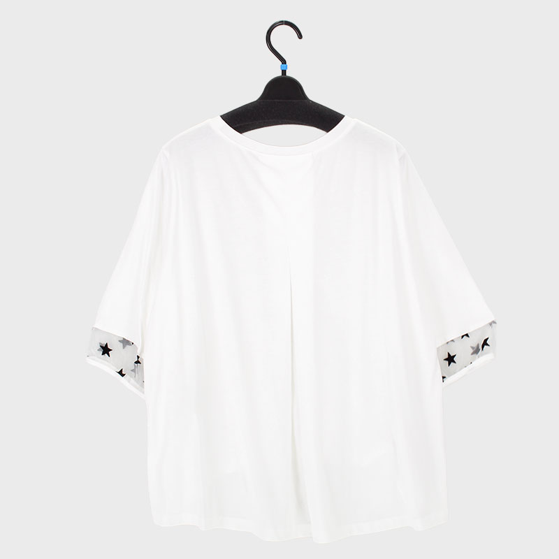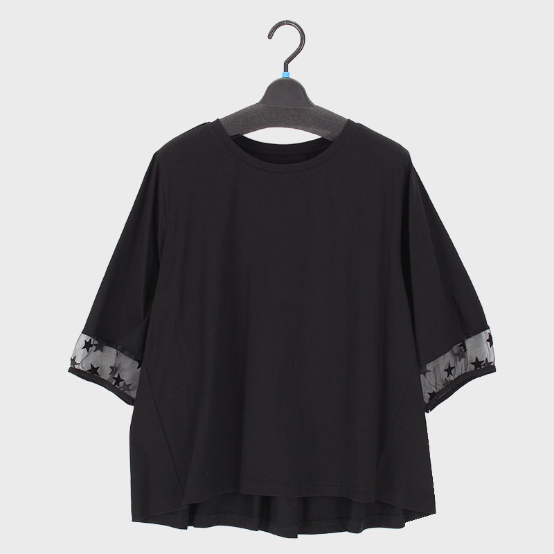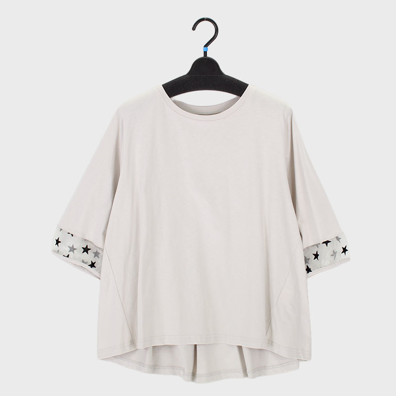 婦人星柄フロッキー使い6分袖切替えTシャツ