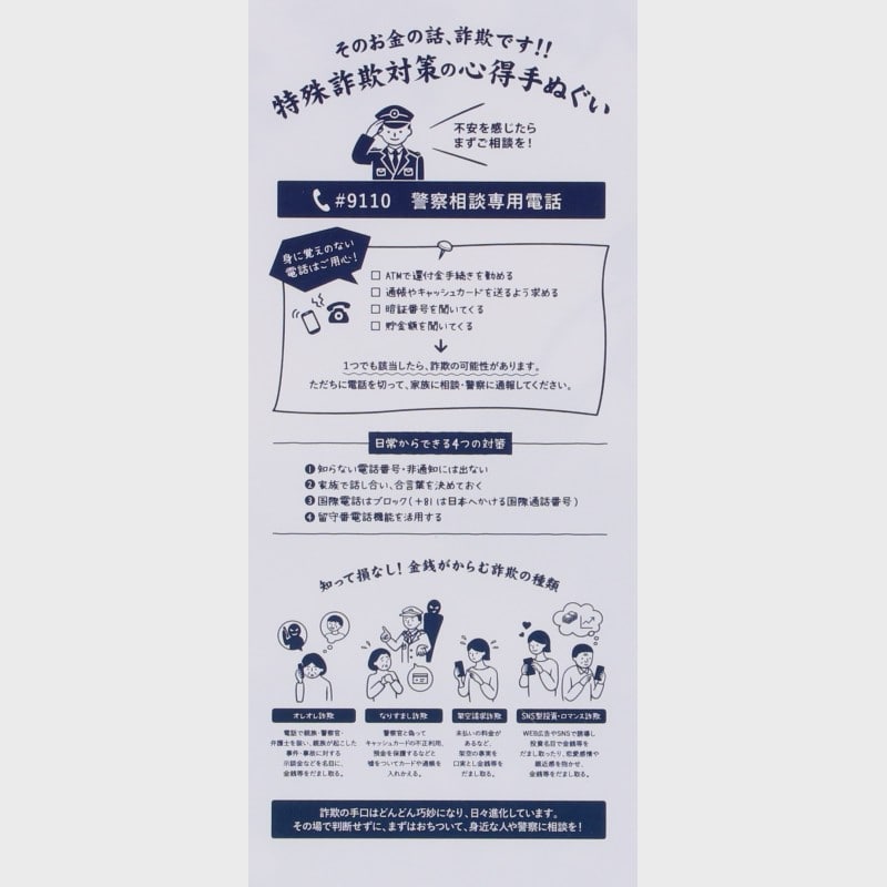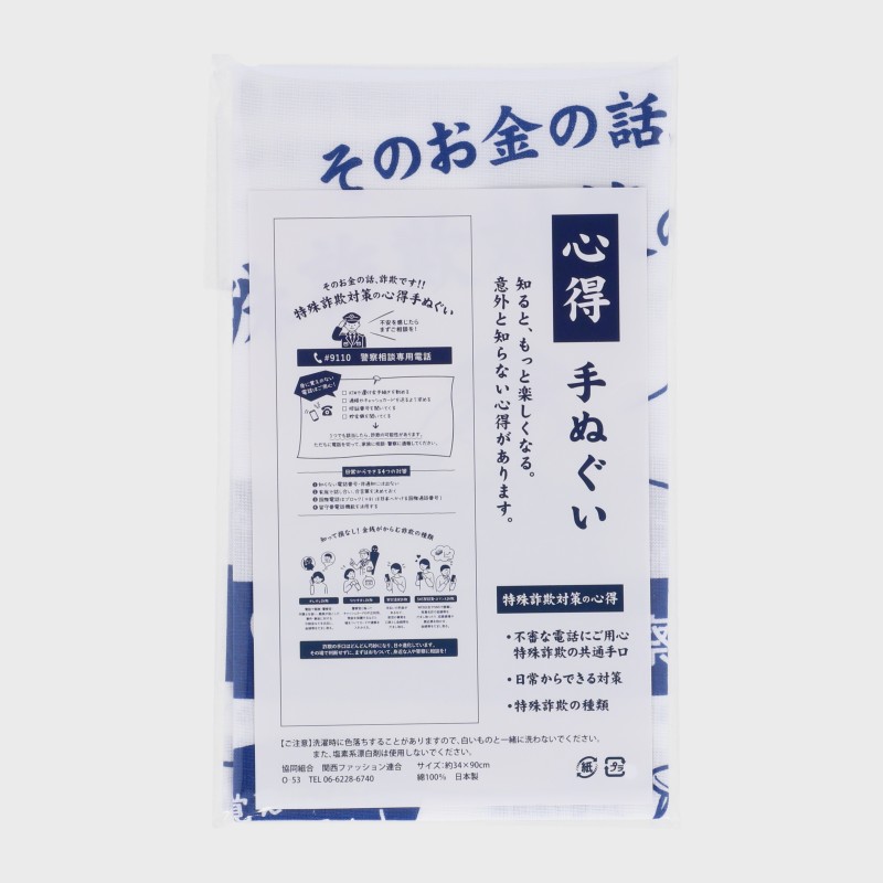 大西衣料(株)が運営する、【公式】卸・仕入れサイト『SELF WEB SHOP』で 特殊詐欺対策の心得手拭 をお仕入れ!