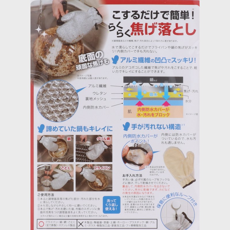 大西衣料(株)が運営する、【公式】卸・仕入れサイト『SELF WEB SHOP』で 手が汚れない アルミで焦げ取りミトン をお仕入れ!