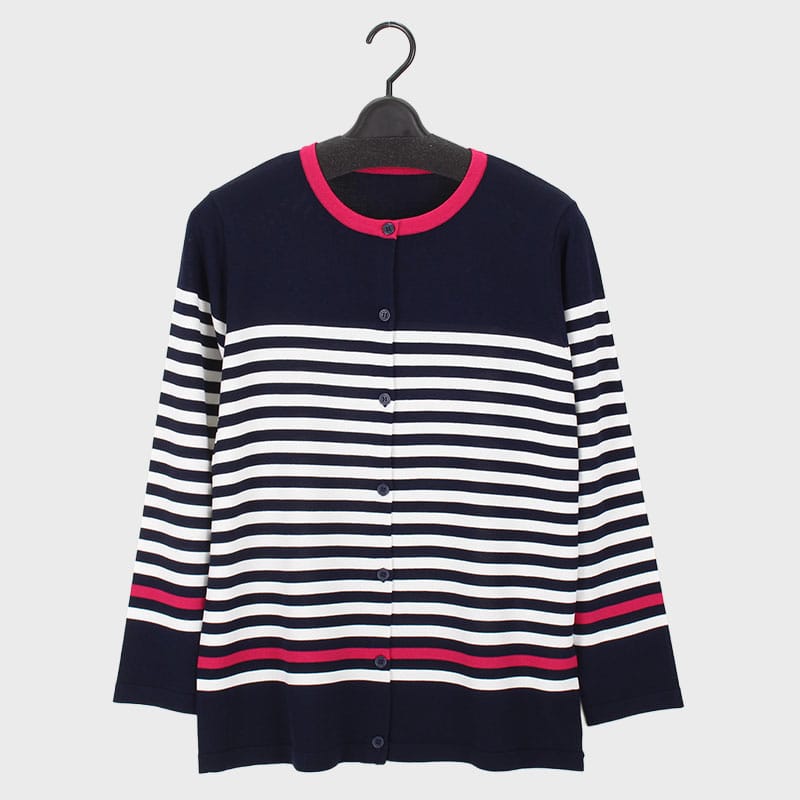 婦人長袖ボーダーカーデガン