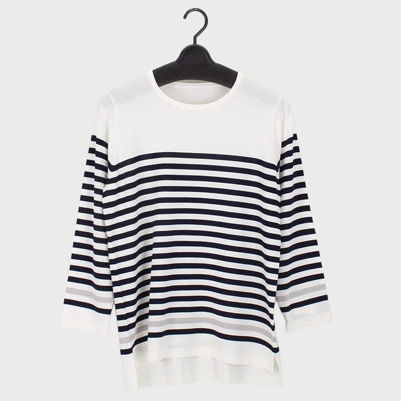 大西衣料(株)が運営する、【公式】卸・仕入れサイト『SELF WEB SHOP』で 婦人8分袖ボーダーセーター をお仕入れ!