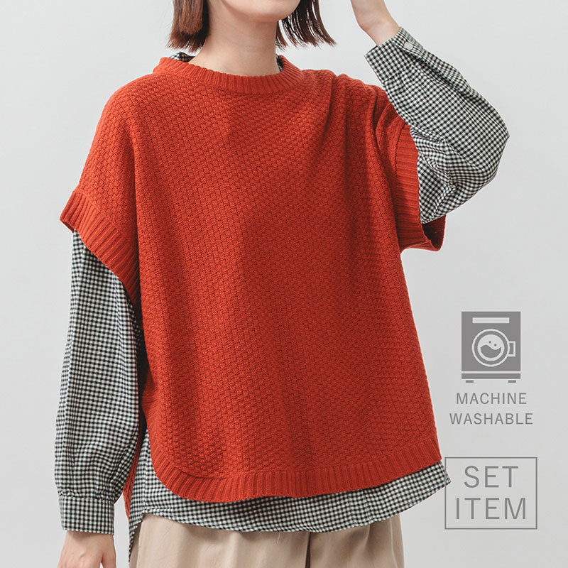 - 【素材】アウター(ベスト):アクリル100% インナー(ブラウス):ポリエステル65%・綿35%
