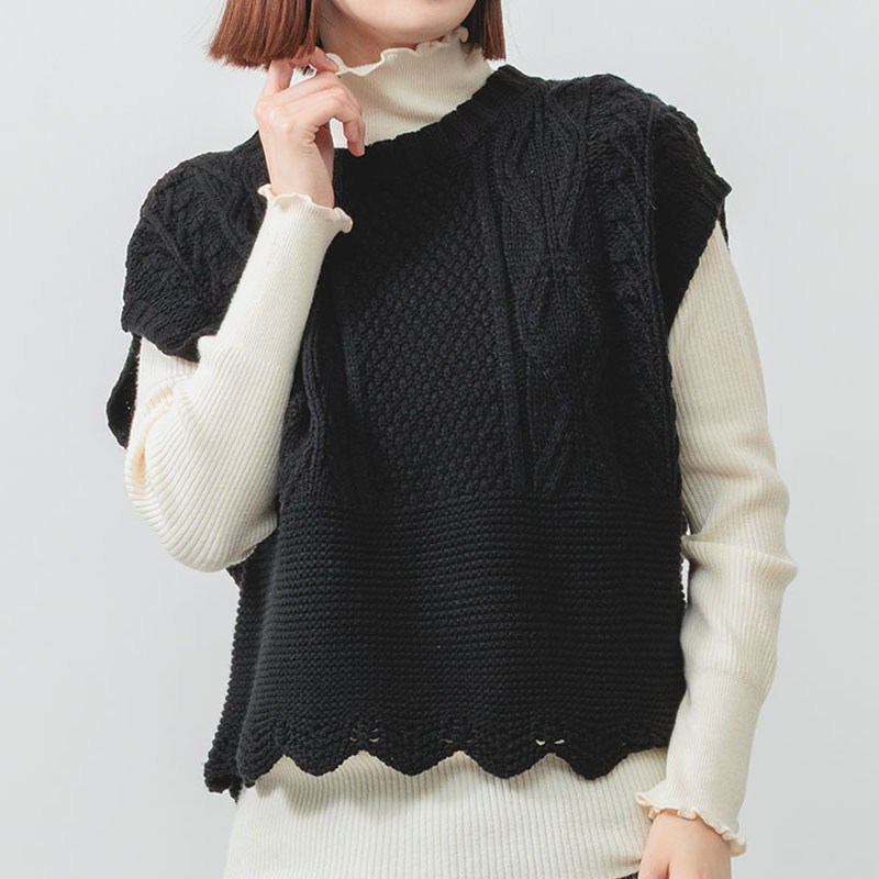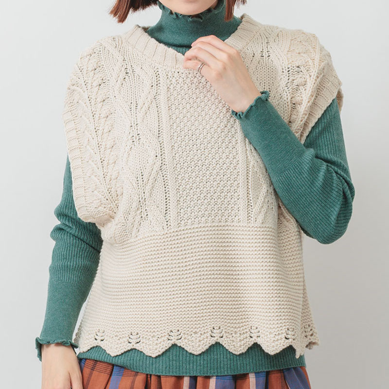 婦人『m.m.o.』柄編みプルオーバーベスト
