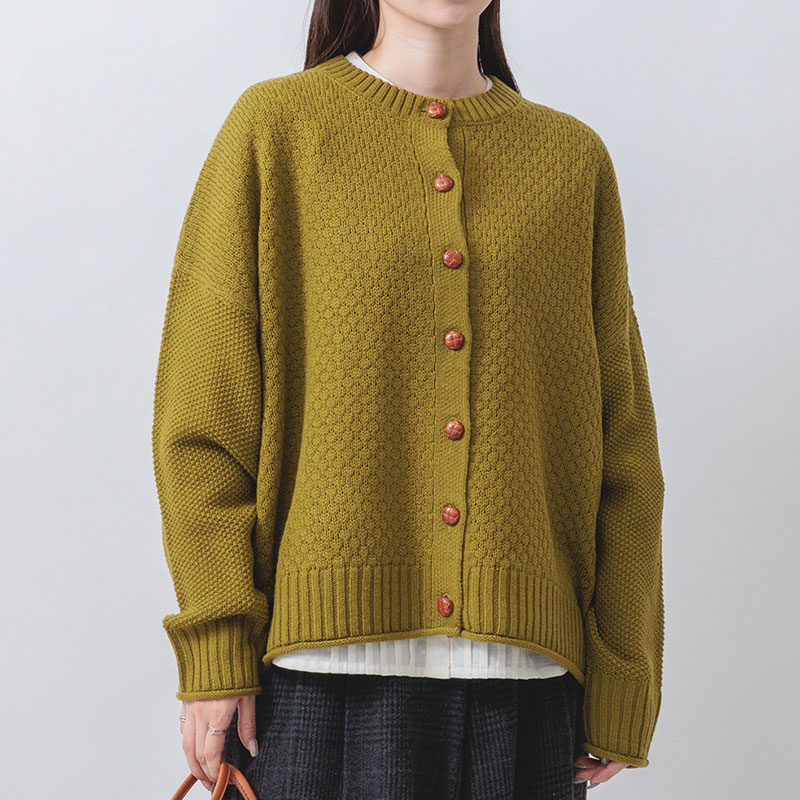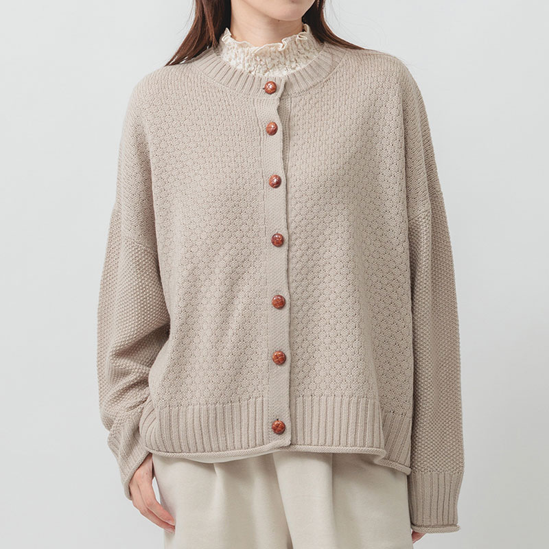 婦人『m.m.o.』ポップコーン編みクルーネックカーディガン