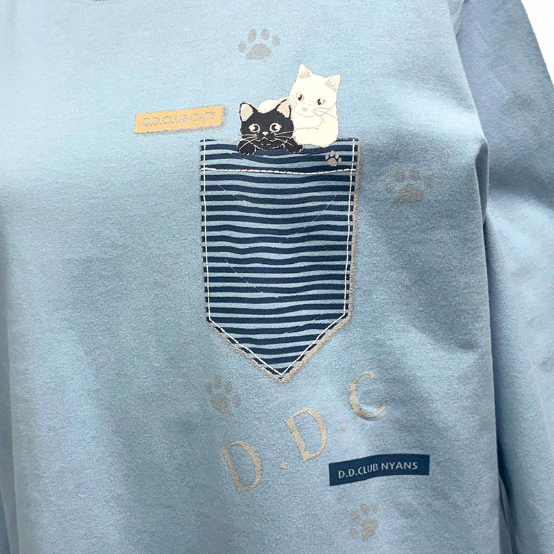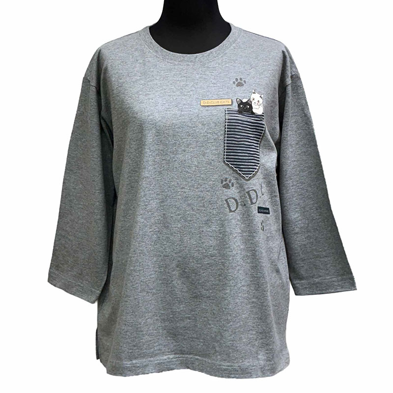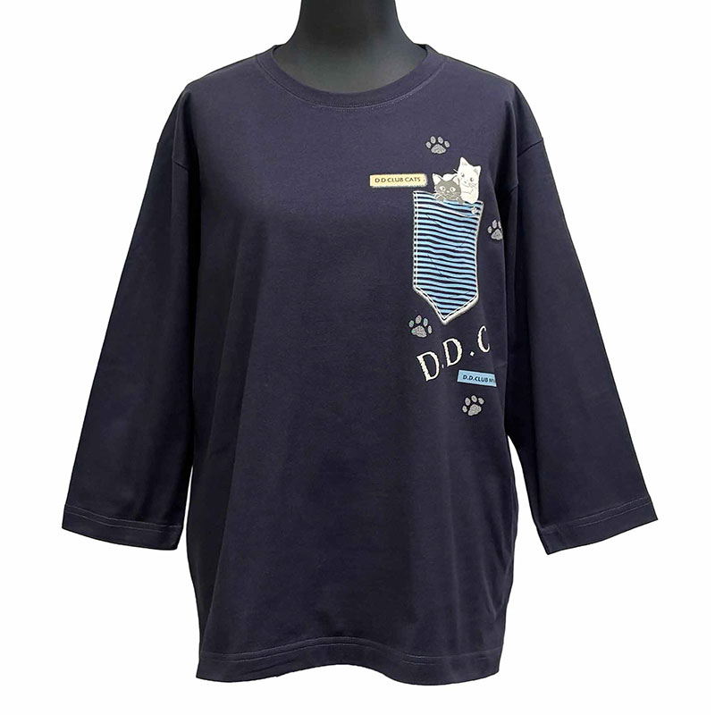 婦人DDCLUB7分袖Tシャツ(ネコ2匹)