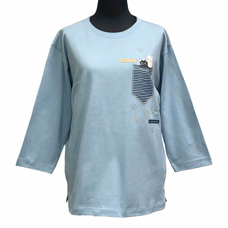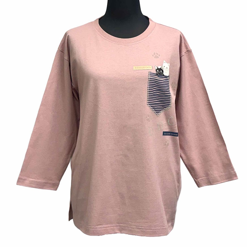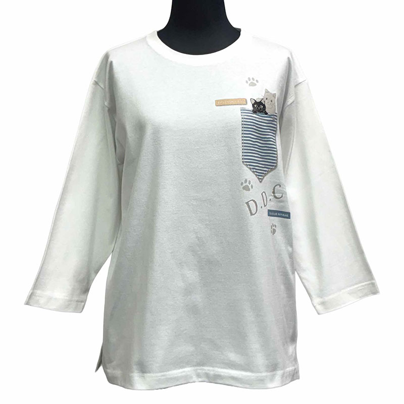 大西衣料(株)が運営する、【公式】卸・仕入れサイト『SELF WEB SHOP』で 婦人DDCLUB7分袖Tシャツ(ネコ2匹) をお仕入れ!