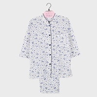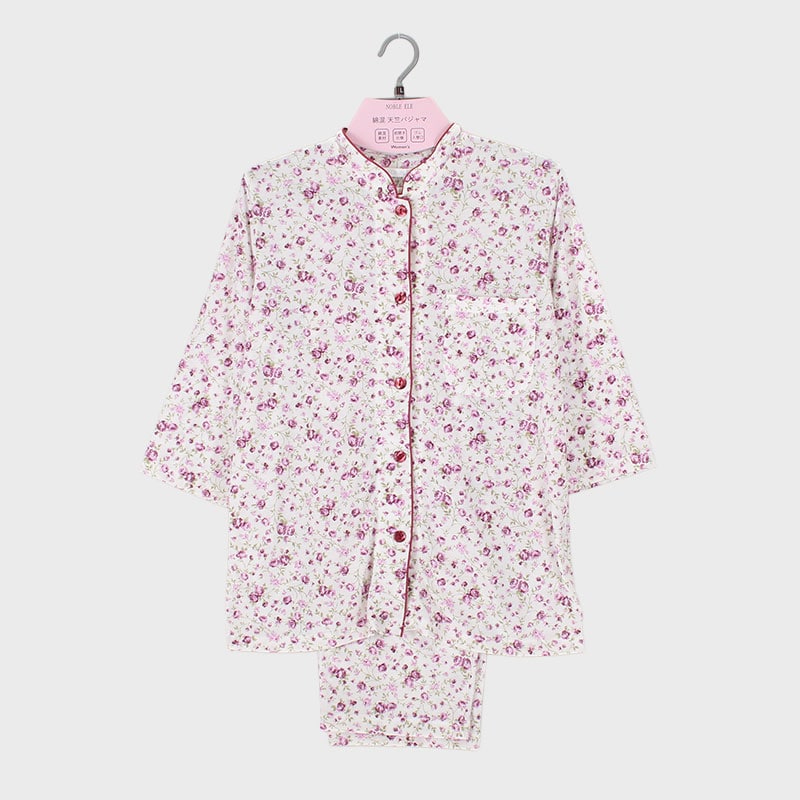 婦人『NOBLE ELE』綿混天竺マオカラー7分袖パジャマ(バラ)